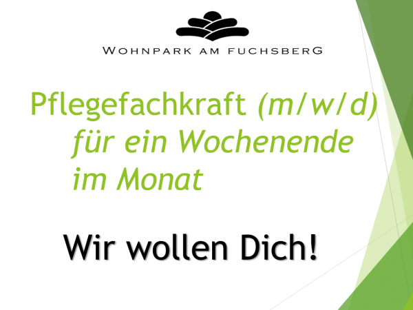 Pflegefachkraft für ein Wochenende im Monat (Altenpfleger, Gesundheits- und Krankenpfleger m/w/d)