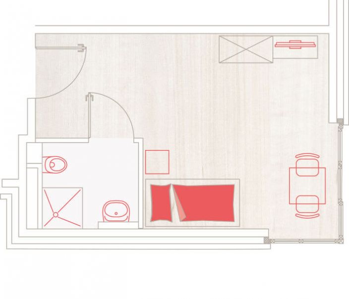Beispiel Komfortzimmer: 24 qm zzgl. Bad
