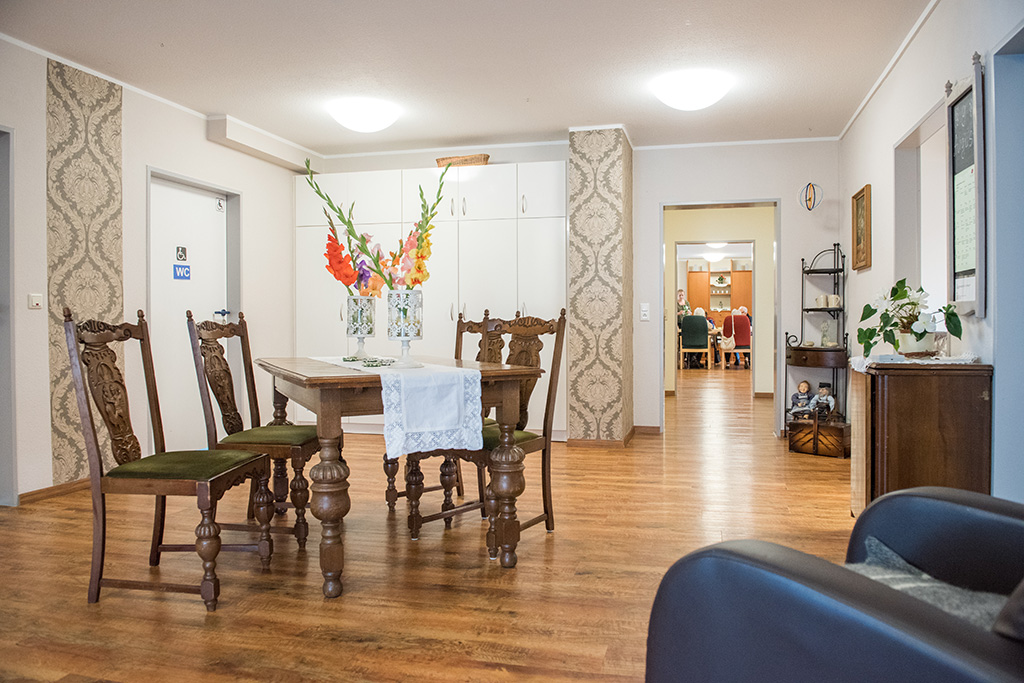 In diesem schönen Ambiente bieten wir älteren Menschen auf 2.600 qm Wohn-Nutzfläche und einem 29.000 qm Grundstück Unterstützung an – je nach Pflegebedarf von der Tagespflege bis zum dauerhaften Aufenthalt.