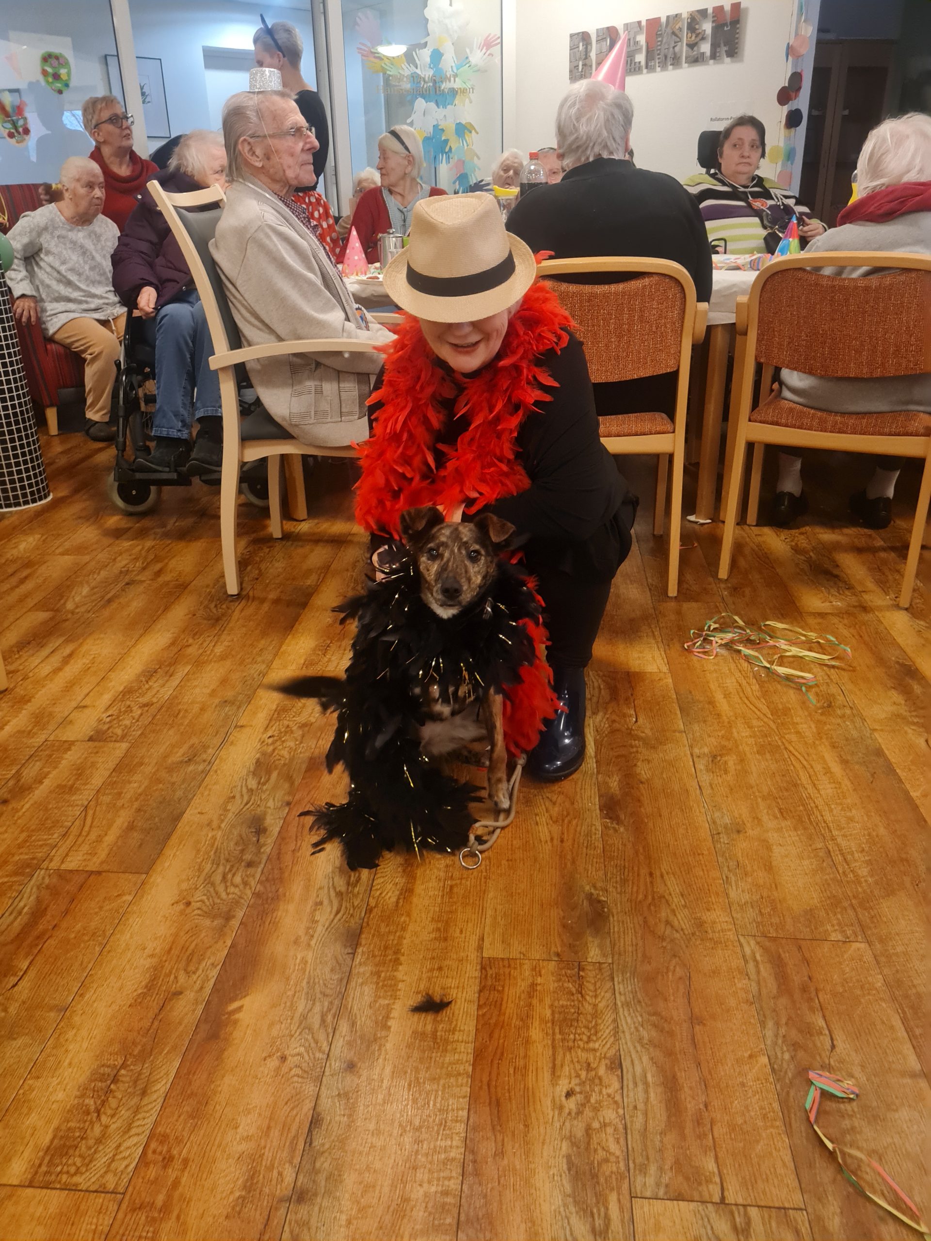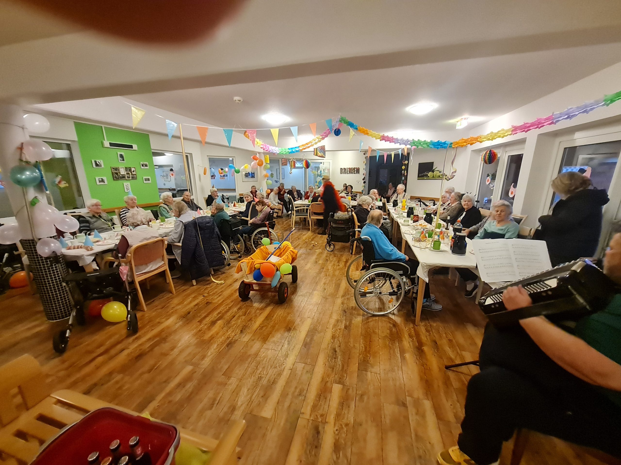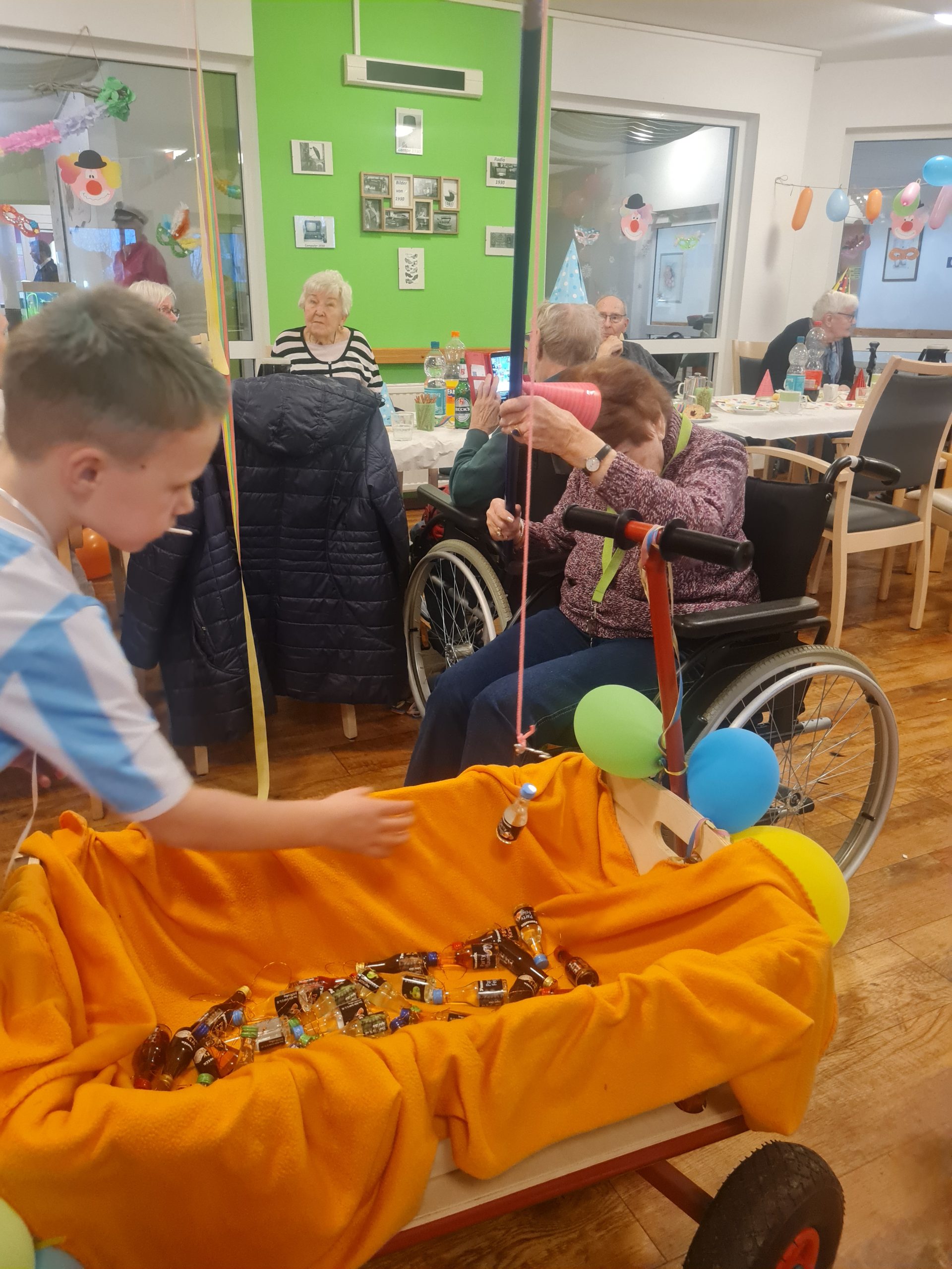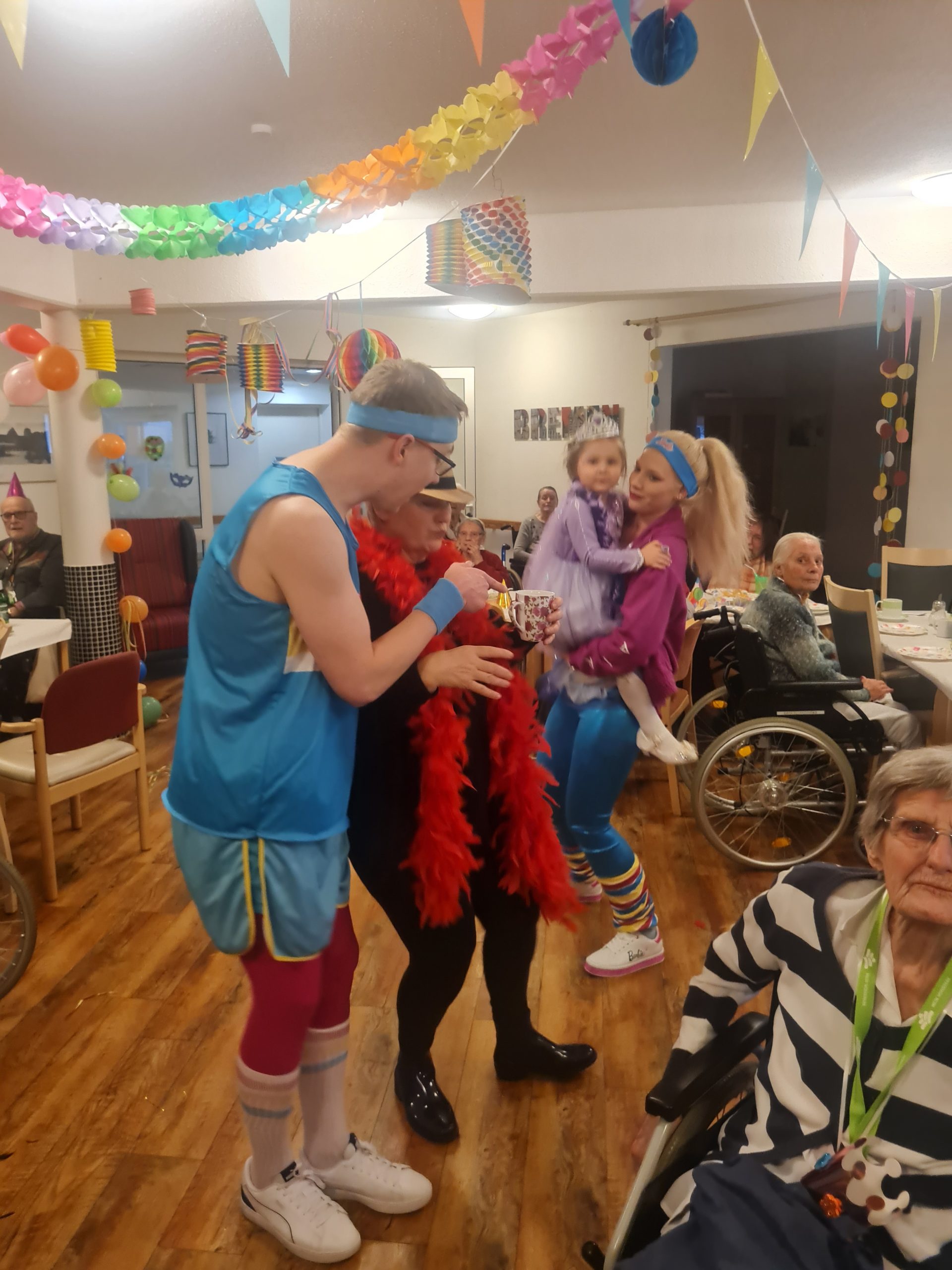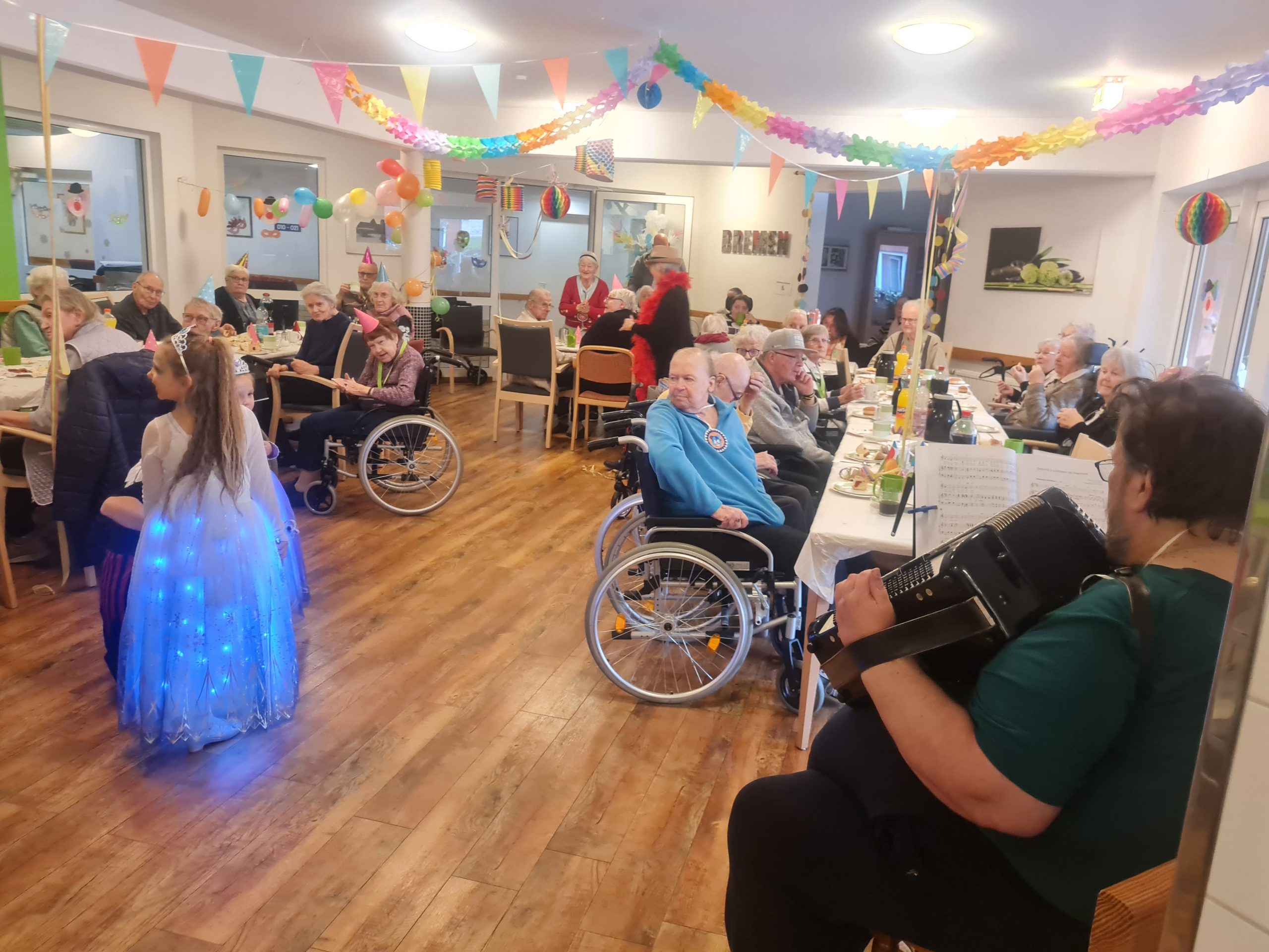 Mit Akkordeonmusik von Herrn Röge begleitet wurde sich verkleidet und geschminkt. Es wurden Karnevalslieder gesungen, geschunkelt und Spiele gespielt. Außerdem wurde der Eierlikör auch nicht fehlen.