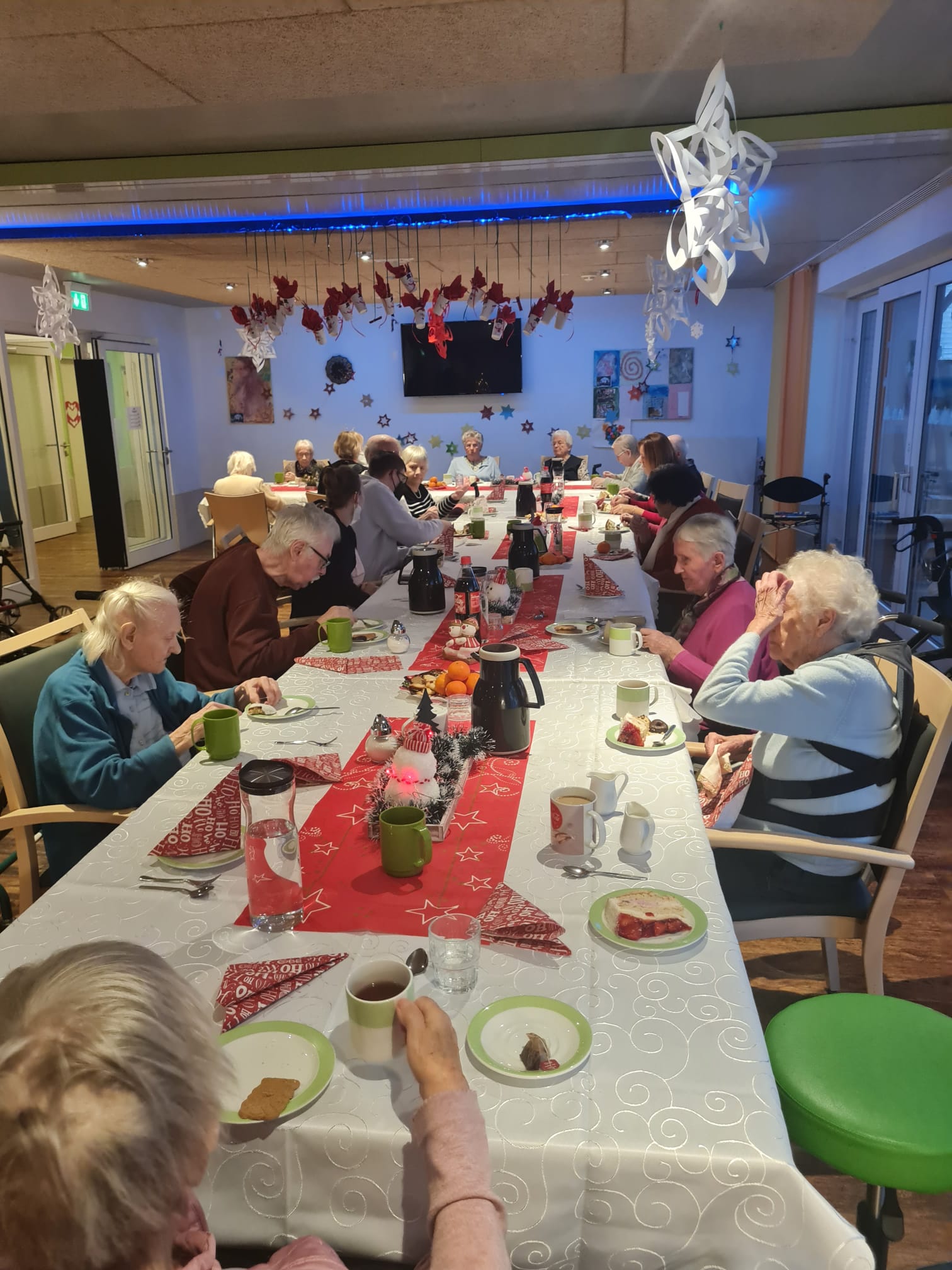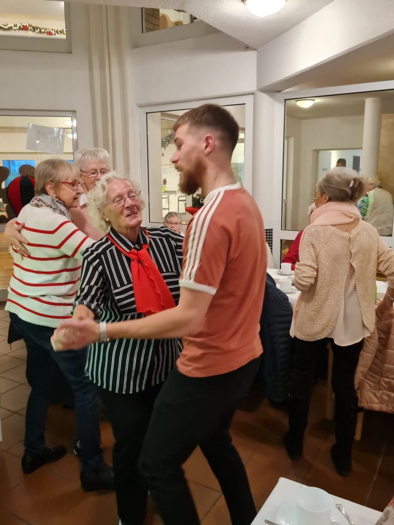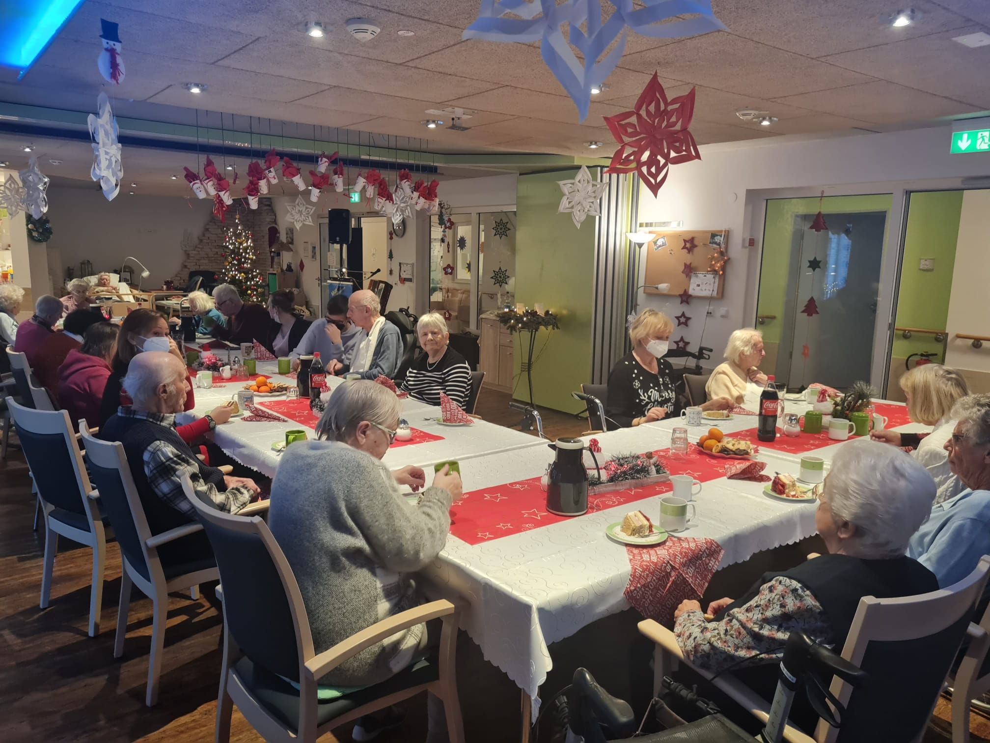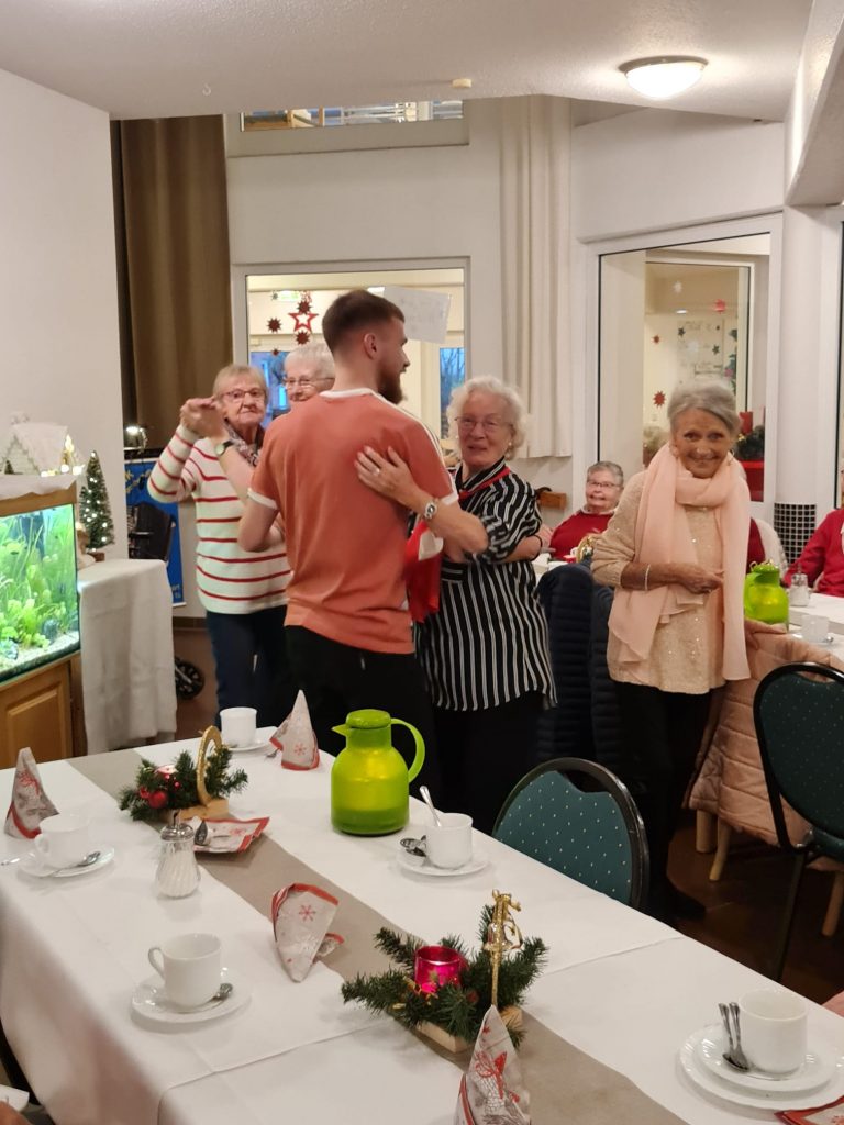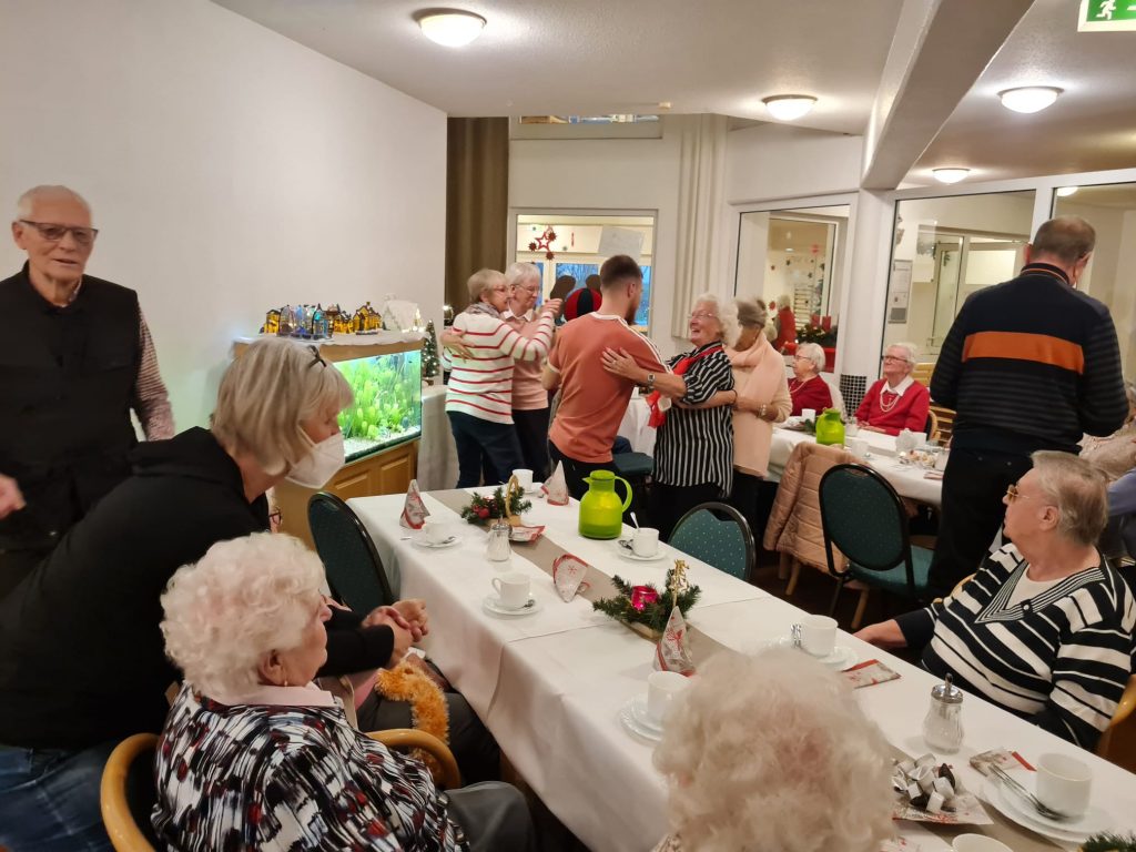Die Bewohner der Service-Wohnungen haben einen schönen Nachmittag im Café verbracht, musikalisch begleitet von Heino Engelbart, welcher schon viele Jahre bei uns musiziert. Neben Torte und Kaffee gab es Glühwein, Kekse und Stollen. Im Anschluss wurde noch das Tanzbein geschwungen – da hat es selbst unsere Verwaltungsfachkraft nicht mehr am Schreibtisch ausgehalten und mitgetanzt. Rundum ein gelungenes Fest!