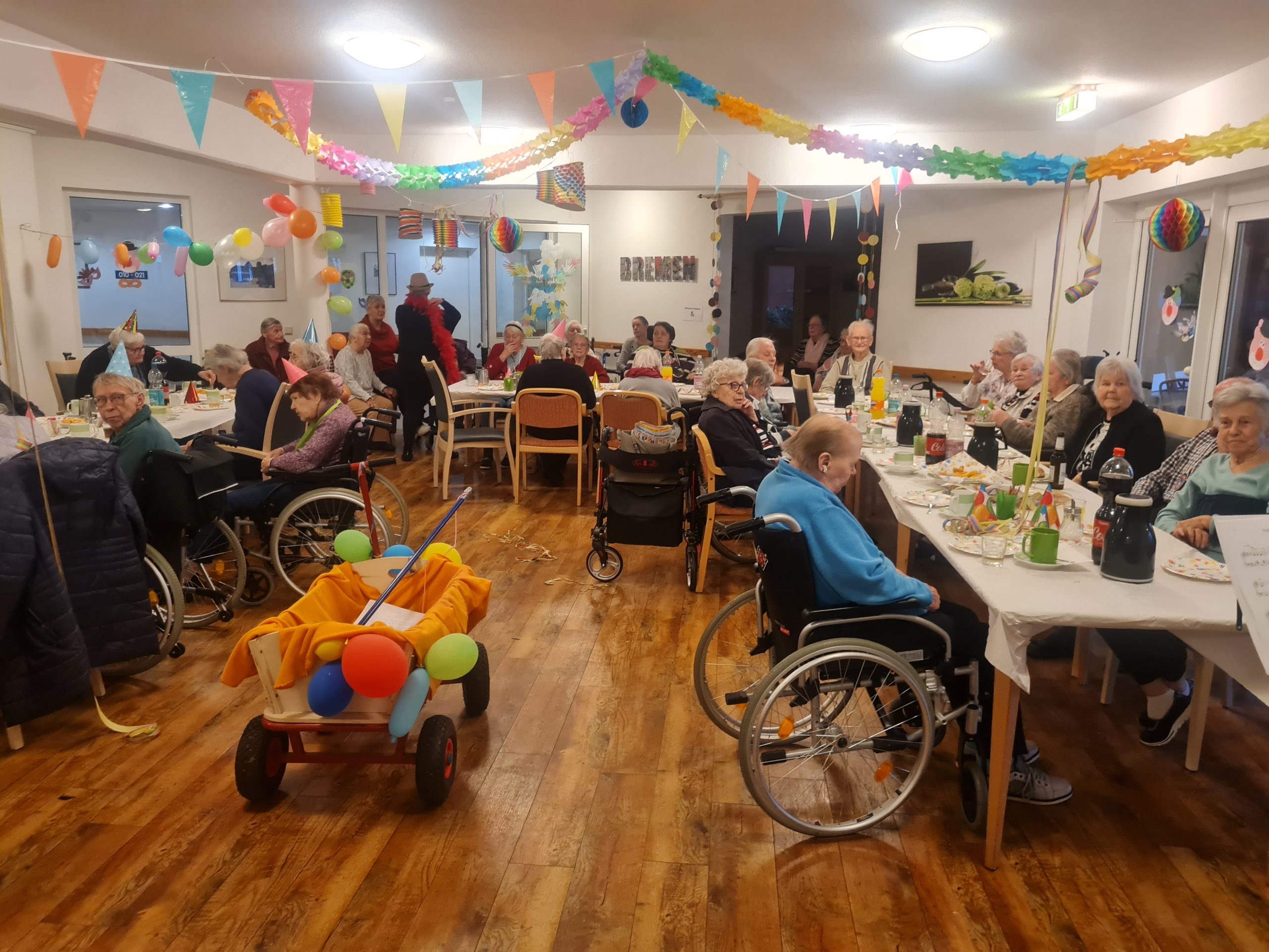 Mit Akkordeonmusik von Herrn Röge begleitet wurde sich verkleidet und geschminkt.